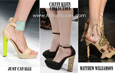 Wondering about latest trends for 2013 of footwear all about ? Shoe trends for Spring/Summer 2013 season are all about pointed toes, metallic finish, transparent details, and architectural shapes. An ankle strap is also a key trend in footwear for Spring/Summer 2013. Silver foil shoes and sandals were all over the runway during Fashion Week spotted at Nicole Miller, Emporio Armani, Giambattista Valli’s fashion shows. At Moschino heeled sandals were decorated with crushed crystals and metallic leaf plates while at Viktor & Rolf metallic pumps were made of textured material. Clear heels and straps are back for Spring/Summer 2013 season. Amazing wedged sandals in clear platforms from Donna Karan and Valentino, while Veronique Leroy showcased wedged boots with clear outer linging. Some other brands incorporated this trend subtly adding only a clear ankle strap. Men’s style shoes were spotted at Victoria Beckham who designed those in black and white, at 3.1 Phillip Lim who offers strap-y flat men’s style shoes, and at Giorgio Armani who created classic men’s shoes for women.